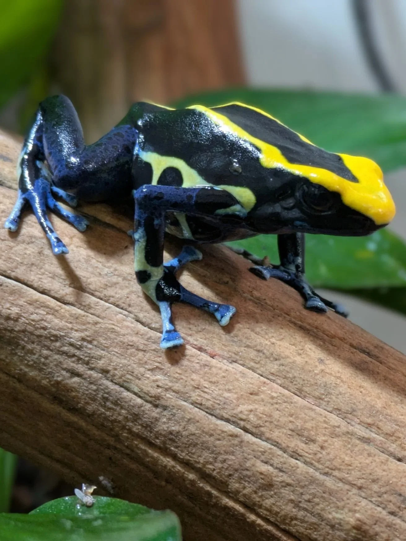 Edna is retired from science but that hasn’t slowed her down. Edna can’t get enough fruit flies and has a passion for springtails. As the more bold of the two, Edna mostly spends her days at the door begging for food. Edna lives with Eugene and is a dyeing poison frog (D. tinctorius).
